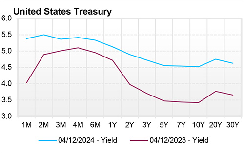 US Equities have experienced a strong start to 2024, with the S&P 500 up nearly 8% through mid-April. With Q1 in the books, 83% of S&P 500 companies reported a positive EPS surprise during the period (Factset). Markets experienced a small selloff in recent days with geopolitical risks cited as the primary culprit. Communication Services has led all S&P 500 sectors this year with a return of +17.82%. Other outperformers include Energy (+14.83%) and Information Technology (+11.11%).