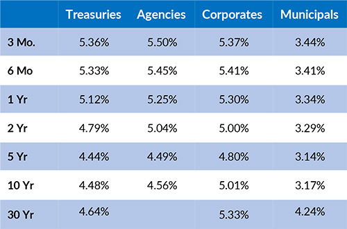 Year to date, the best performing sectors have been Information Technology (+27.79%), Communication Services (+26.09%), and Financials (+9.25%). The worst performing sectors this year have been Materials (+3.13%), Consumer Discretionary (+5.22%), and Real Estate (-4.14%).