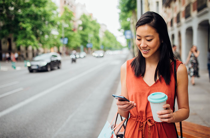 Woman checking her phone while shopping Woman checking her phone while shopping